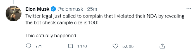 马斯克:推特说我泄露机器人样本量,违反保密协议